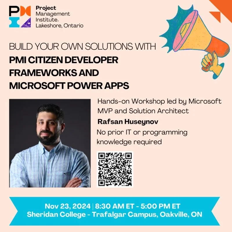 This interactive full-day workshop introduced participants to the world of citizen development, offering a step-by-step path from ideation to implementation using PMI’s Citizen Developer frameworks and Microsoft Power Platform. Designed for non-technical professionals, the session provided foundational knowledge, practical tools, and hands-on experience to build functional business applications.